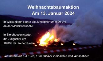 | 09.00 Uhr | CVJM-Weihnachtsbaumaktion, wir treffen uns an der Mehrzweckhalle Wissenbach |