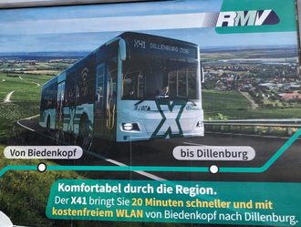 Die Linie X41 verbindet Biedenkopf und Dillenburg im Stundentakt in beide Richtungen. Neben Simmersbach (Grundschule) werden in Eschenburg die Haltestellen „Eibelshausen Markt“, „Panoramabad“ am Schwimmbad und „Wissenbach Ortsmitte“ angesteuert.
