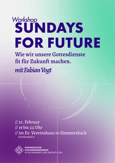 | 19.00 Uhr | Sundays for future!- Wie wir Gottesdienste fit für die Zukunft machen mit Dr. Fabian Vogt, Ev. Vereinshaus Girnbachtal |