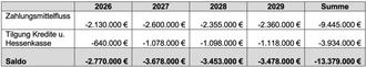 | mit dem Saldo aus den Einzahlungen und Auszahlungen aus lfd. Verwaltungstätigkeit auf | -2.130.000 € |