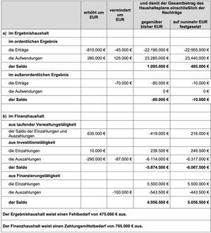Die Nachtragshaushaltssatzung mit Anlagen finden sie online unter