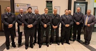 Ernannt und entlassen (von links): Gemeindebrandinspektor Jochen Pfeifer, Thomas Weyand, Lukas Ortmann, Jörg Waldschmidt, Sebastian Waldschmidt, Harald Hain, Jens Orth, Christopher Reh, Mario Hermann und Bürgermeister Götz Konrad.