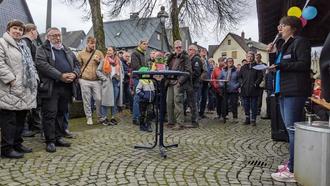 Der Dorfplatz "Am Lutz" in der Hirzenhainer Dorfmitte wurde schon vor 11 Uhr von den Mitbürgerinnen und -bürgern aufgesucht. Sie alle kamen, um sich über die Gründung des Dorfladens - zum Erwerb von Lebensmitteln und Backwaren -, zu informieren und sich bei selbstgekochter Erbsensuppe und Getränken, über das gemeinsame Projekt „Unser Hirzenhainer Dorfladen“ als Genossenschaft auszutauschen. Hierdurch wird nicht zuletzt die funktionierende Dorfgemeinschaft der Hirzenhainer ausgedrückt. Melanie Bonorden vom Dorfladenteam begrüßte die Anwesenden, sie unterstrich dabei, dass der zukünftige Dorfladen mehr als nur ein Lebensmittelgeschäft sein soll, sondern darüber hinaus ein Treffpunkt für Jung und Alt, um sich zu begegnen und auszutauschen. Thomas Plessl von der Gutkauf Vertriebsleitung und das Dorfladenteam standen anschließend zu Rede und Antwort bereit. Bei Gesprächen und einem regen Austausch von Ideen und Fragen fühlte sich das Treffen fast wie ein großes Familienfest an. Eine Mitbürgerin, Christa Schwarz (Hirzenhain-Bahnhof), wurde mit einem Blumenstrauß überrascht, hatte sie gerade den 300. Genossenschaftsanteil unterschrieben. Jede Zeichnung zur Ladeneröffnung zählt. Aus diesem Grund erhoffen sich die Initiatoren weitere Anteilszeichner. Noch ist der Laden nicht eröffnet, dem dürfte aber nichts mehr im Wege stehen, da die wichtigste Grundlage gelegt wurde: Die Hirzenhainer möchten wieder einen Dorfladen. Der nächste Schritt wird nun die Gründung der Genossenschaft sein. Geplant ist diese Ende April. Weitere Fragen und Anregungen können Sie uns per Mail mitteilen: team@hirzenhainer-dorfladen.de. Auf unserer Homepage www.hirzenhainer-dorfladen halten wir Sie auf dem Laufenden. Dort finden Sie auch einen Fragebogen zum Dorfladen und die „Absichtserklärung zur Zeichnung von Geschäftsanteilen“.
