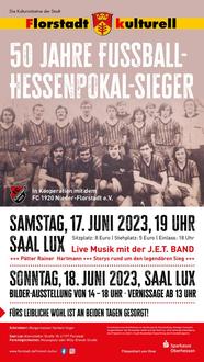 Am Samstag, den 17.06.2023 jährt sich dieser Sieg des FC 1920 Nieder-Florstadt zum 50. Mal. Aus diesem Grund präsentiert „Florstadt kulturell“ in Kooperation mit dem FC 1920 Nieder-Florstadt einen informativen und unterhaltsamen Abend im Saal Lux. Einlass ist um 18 Uhr. Um 19 Uhr eröffnet Bürgermeister Unger die Veranstaltung und wird dann im Anschluss gemeinsam mit Christian Hilß (1. Vorsitzender FC 1920 Nieder-Florstadt) die Hessenpokalsieger ehren. Freuen darf man sich auch auf eine Interview-Runde mit zwei ausgewählten Hessenpokalsiegern, sowie eine Darbietung von Pätter Rainer Hartmann, der damals ebenfalls Teil der Mannschaft war. Musikalisch umrahmt wird die Veranstaltung von der „Jet-Band“ und für das leibliche Wohl ist bestens gesorgt.