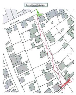 Wir bitten Sie, die Müllbehälter zu den entsprechenden Leerungsterminen auf die Ecke Kreuzung „Auf der Beunde“ zu stellen. Die dort platzierten Glascontainer werden für die Zeit der Bauphase entfernt.