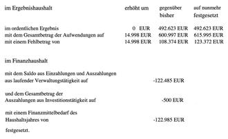 Der Nachtragshaushaltsplan für das Haushaltsjahr 2023 wird