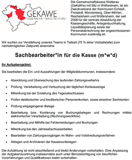 buergerservice/aktuelles/stellenausschreibungen) Bei Fragen steht Ihnen Herr Herrmann unter der Telefonnummer 0 60 36 - 97 37 - 15 zur Verfügung.