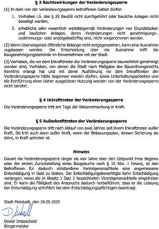 Die Veränderungssperre tritt am Tage der Bekanntmachung in Kraft.