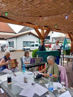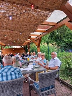 Kürzlich fand wieder der schon traditionelle Biergarten-Gottesdienst in Stammheim statt. Prädikant Gerd Schwalm, der den Gottesdienst geleitet hat, freute sich über die gute Resonanz. Der zentrale Punkt des Gottesdienstes war seine Ansprache zum Thema "Segen". Und eine Besonderheit bestand darin, dass vom Lied "Geh' aus, mein Herz, und suche Freud" alle 15 Strophen in aufgeteilten 3er-Blöcken gesungen wurden. Eine offensichtliche Première, da in der Regel nur ausgewählte einzelne Verse erklingen. Informationen zum Liedtext von Paul Gerhardt gab es auch. Am Ende waren sich alle einig: Es war wieder schön. Schwalm dankte allen, die an der Gestaltung und Durchführung dieses besonderen Gottesdienstes beteiligt waren.