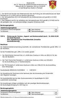 | Hier: Aufstellung einer Prioritätenliste (investive Vereinsförderung) | |