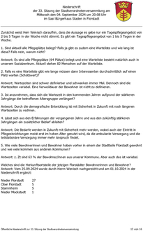 Antwort: Die Bedarfe werden in Zukunft mit Sicherheit mehr werden, wobei auch der Eintritt in Pflegeeinrichtungen meist erst im hohen Alter genutzt wird, da die ambulante Versorgung und die teilstationäre Versorgung immer mehr Anspruch findet.