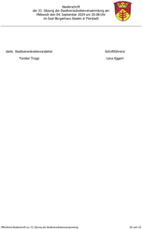 | TOP 2. | Genehmigung der Niederschrift vom 12.07.2024 |