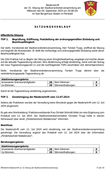 | TOP 11. | Dringlichkeitsantrag der CDU-Fraktion vom 04.09.2024 | |