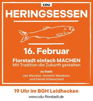 Heringssalat und Pellkartoffeln werden von der CDU Florstadt gesponsert. Anmeldung bitte unter info@cdu-florstadt.de oder via SMS/WhatsApp unter 0160 1402 112.