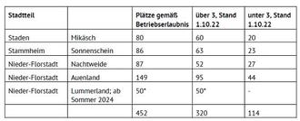 In Florstadt gibt es aktuell die folgende Anzahl von Kita-Plätzen: