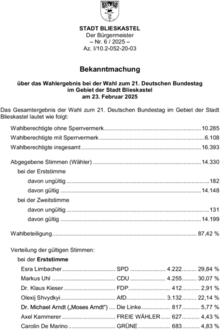 Nächster Artikel: Öffentliche Bekanntmachung - Ausschuss für Umwelt, Planung und Bauen am 10.03.2025
