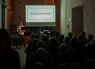 Jörg A. Künzer beim Vortrag in der Orangerie am Schlossberg. (Foto: Sebastian Minas)