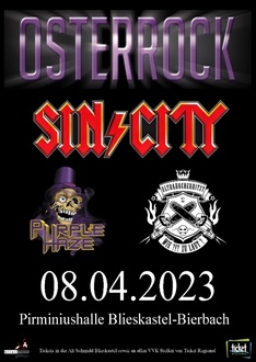 17. Osterrock am 08.04.23 in der Pirminiushalle in Bierbach: Bereits zum 17. Mal lädt die Rockband „Purple Haze“ gemeinsam mit der Stadt Blieskastel zum Osterrock-Festival ein. Am Ostersamstag, 08.04.2023, haben sich die sechs Rocker aus dem Saar-Pfalz-Kreis dieses Jahr erneut eine Tributeband als Headliner eingeladen. Die Besonderheit in diesem Jahr wird sein, dass sowohl Purple Haze als auch Sin City ihr 30jähriges Bühnenjubiläum feiern werden. So wird es beim diesjährigen Osterrock von beiden Bands eine „30 Jahre Special Show“ geben. Lasst euch überraschen!