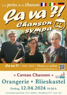 | 12.04.2024 | Caveau Chanson mit „Trio Ca-Va“ in der Orangerie Blieskastel |