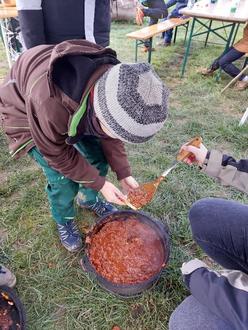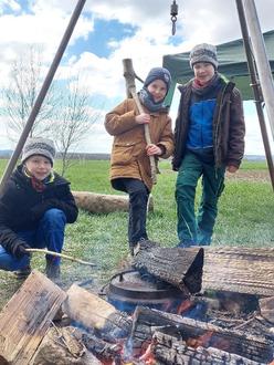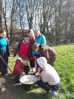 In die diesjährigen Osterferien startete die Jugendpflege bei bestem Wetter mit dem Outdoor Kochkurs. Auf den Teller kommt, was eigens über dem Lagerfeuer gekocht, gebraten und gebacken wurde. In den Tag starteten 16 Kinder mit einem reichhaltigen Frühstück. So wurden Milch, Eier, Haferflocken, Grieß und Zucker im großen Topf über dem Feuer zu einem Frühstücksbrei angerührt. Als Topping diente eine bunte Auswahl von Marmelade, Nüssen, Honig, Beeren und Äpfeln. Nachdem der erste Hunger gestillt war, machten sich die Teilnehmer/innen gleich daran, das Mittagessen vorzubereiten. Auf dem Speiseplan: Sloppy Joe