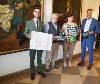 Jens Welsch, Fredi Brabänder, Raffaela Berger und Bürgermeister Bernd Hertzler (von links) präsentierten den Bildband von Blieskastel. (Fotos: Erich Schwarz)