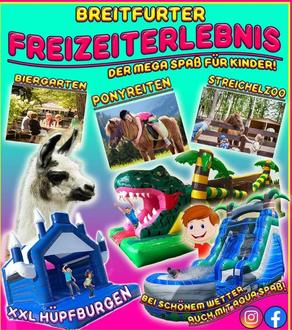 Besuche am Donnerstag den 01.06.2023 gemeinsam mit der Stadtjugendpflege das Breitfurter Freizeiterlebnis. Exklusiv öffnet der Hüpfburgenpark vorab seine Pforten nur für uns! Springe gemeinsam mit deinen Freunden von Hüpfburg zu Hüpfburg, nimm am Ponyreiten teil oder besuche die Tiere im Streichelzoo.