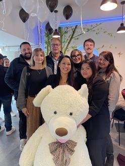 Die beiden Gründerinnen (im Vordergrund) mit Maskottchen, Bürgermeister (Bildmitte) und Mitgliedern des neuen Blieskasteler Gewerbevereins. (Foto: C. Hertzler)