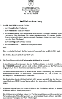 Bekanntmachung WAHL (Europawahl-Kommunalwahl)