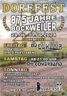 | 28. - 30.06.2024 | 875 - Jahre Böckweiler |