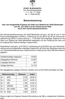 Bekanntmachung Endergebnis Stadtrat