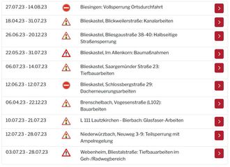 Auszug Baustellen-Info www.blieskastel.de vom 12.07.2023.