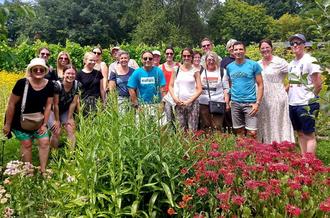 Zur Monatsmitte stand ein weiterer Gruppenbesuch der „Essbaren Stadt“ an, diesmal von einer Abteilung des Arbeitsamtes Homburg, Neunkirchen und Sankt Wendel, das am 13. Juli das schöne Wetter für einen Betriebsausflug in die Biosphärenstadt Blieskastel nutzte. „Auch hier waren die Besucher insbesondere vom Bürgergarten begeistert“, berichtet Gärtnermeister Andreas Ternes, der beide Gruppen begleitete und im Rahmen der Begehungen immer sach- und fachkundig Fragen beantwortet.