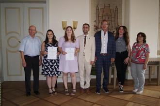 Von links: Thomas Toussaint, Verena Zimmermann, Louisa Tussing, Jens Welsch, Bürgermeister Bernd Hertzler, Katharina Stefan und Annerose Brabänder.