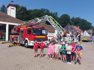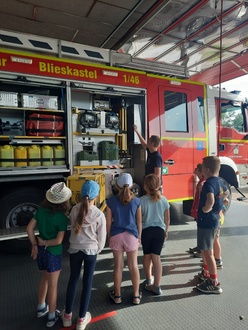 Im Rahmen des Ferienprogramms besuchte die Jugendpflege ebenfalls die Freiwillige Feuerwehr Blieskastel-Mitte. Die Jugendleiter der Feuerwehr Kai und Ruben begrüßten insgesamt 17 Kinder.