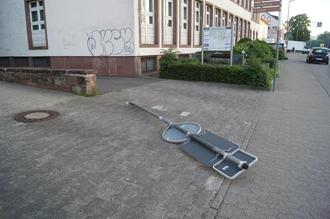 Mutwillige Sachbeschädigung in der Bahnhofstraße an der Beschilderung vor dem Rathaus,…