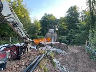Sicherheitseinweisung an der Baustelle, die Abbrucharbeiten haben begonnen.