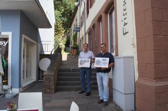 Bürgermeister Bernd Hertzler und Stadtarchivar Kurt Legrum am Standort eines der vormalig 3 Stadttore.