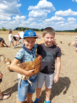 Nach der wohlverdienten Mittagspause machten sich die Kinder auf zum Hühnerstall. Dort lernten sie die Tiere und die artgerechte Haltung kennen, sammelten die Eier ein, durften einen Blick in den Hühnerstall werfen und verbrachten Zeit mit den Tieren im Gehege. Insgesamt wurden 322 Eier von den Kindern gesammelt. Auch wurden die Schweine und Kühe versorgt. Am Abend wurde gemeinsam eine leckere Minestrone überm Lagerfeuer gekocht.