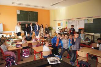Die Erstklässler waren begeistert über den Besuch des Bürgermeisters und über das schöne Buchgeschenk. (Foto: U. Brengel)