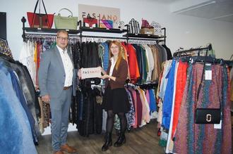Lisa Dornoff in ihrer Second Hand Boutique „Fashand“ mit Bürgermeister Bernd Hertzler (Foto: Uwe Brengel)