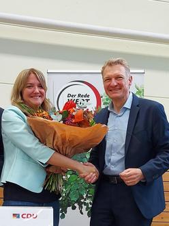 Der CDU Landesvorsitzende, Stephan Toscani, gratuliert Jutta Schmitt-Lang zur Wahl