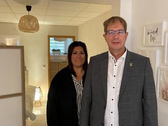 Wellness- und Massagetherapeutin Nicole Schmitt freute sich nach der Geschäftseröffnung über den Besuch des Bürgermeisters. (Foto: U. Brengel)