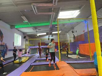 Vor Ort angekommen, trafen die Kinder beider Gruppen aufeinander und es dauerte nicht lange, bis sie gemeinsam die Trampolinhalle eroberten. Ein großer Vorteil: Die Halle stand unserer Gruppe exklusiv zur Verfügung, sodass sich alle frei auf den Trampolinen austoben konnten.