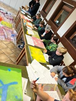 Anschließend übertrugen die jungen Künstler ihre Skizzen auf die Leinwände und kolorierten sie mit Acrylstiften. Dabei entstand eine beeindruckende Vielfalt an farbenfrohen und ausdrucksstarken Kunstwerken, die die Kreativität der Jugendlichen widerspiegelten.