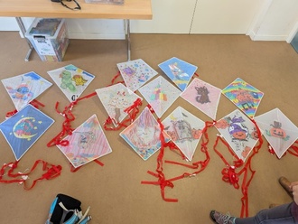 Unter fachkundiger Anleitung entstanden individuelle Drachen aus Papier, Stäben und bunten Dekorationen. Mit großem Eifer wurde gemalt und gestaltet – der Kreativität waren keine Grenzen gesetzt.