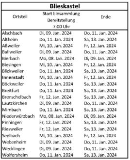 Abholtermine siehe Tabelle unten!