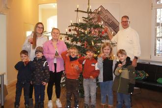 Für weihnachtliche Stimmung unter Rathaus-Bediensteten sowie allen Besucherinnen und Besuchern der drei Verwaltungsgebäude sorgen alljährlich Kinder der Kitas Ballweiler und Webenheim. In den Eingangsbereichen der Rathäuser schmücken sie die dort aufgestellten Tannenbäume mit hübscher, überwiegend selbst gebastelter Dekoration. In den Rathäusern II und III wurden die Tannenbäume auch in diesem Jahr von einem fleißigen Team der Kita Ballweiler versorgt, im Rathaus I am Paradeplatz waren wiederum fleißige Dekorateure aus Webenheim zugange. Der Bürgermeister sorgte wie in jedem Jahr, unterstützt durch die Mitarbeiterinnen Milana Maas und Sabrina Brüll, für Getränke und Geschenktüten, unter anderem gefüllt mit Mandarinen und Äpfeln.
