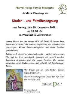 Kindersegnung am 30. Dezember 2022 um 15 Uhr in Lautzkirchen