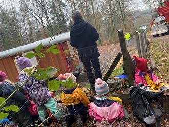 Unter dem Beifall der Kinder und Erzieherinnen aus dem Waldkindergarten in Lautzkirchen wurde Ende letzter Woche von Bürgermeister Bernd Hertzler und dem für die Kindergärten zuständigen Beigeordneten Guido Freidinger der neue Bauwagen in Empfang genommen. Aufgrund von Material- und Personal-Engpässen hatte sich die Auslieferung zwar um gut ein dreiviertel Jahr verzögert, zu guter Letzt sind aber alle Beteiligten hocherfreut, dass nun der funkelnagelneue Bauwagen in Betrieb genommen werden kann und damit das pädagogische Angebot unseres Waldkindergartens deutlich erweitert wird. Zuvor war für den Sammelplatz im Waldkindergarten durch eine Fremdfirma eine neue Drainage eingebaut worden, um zukünftig den Wasserabfluss auf dem Gelände zu verbessern. Nun werden die Bauwägen noch an ihren endgültigen Standort rangiert und der Platz mit Holz-Hackschnitzeln neu ausgelegt. Dann wird die Spiel-Hütte an ihrem neuen Standort wiederaufgebaut und schließlich zwischen den beiden Bauwägen eine Pergola bzw. Überdachung eingerichtet, um zukünftig auch einen bei leichtem Regen nutzbaren Treffpunkt zu haben. Die Ausstattung des Bauwagens und die Gestaltung des Platzes erfolgten nach den Wünschen der Erzieherinnen und der Kinder. Wegen der Bauarbeiten hatten sich die Kinder vorübergehend direkt an ihren Spielorten im Wald getroffen, die Kooperationsstunde mit der Grundschule fand in dieser Zeit generell im sogenannten Schutzraum im alten Kindergarten in Bierbach statt. (fr)