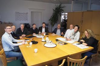 Die Arbeitsgruppe „Strategische Energiewende Blieskastel jetzt“ unter der Leitung des Zweiten Beigeordneten im Rahmen einer aktuellen Tagung im Rathaus II. Von links: Leonhard Schädler (Pfalzwerke AG), Dr. Klaus Reifarth (Energieexperte), Dr. Hans-Henning Krämer (Klimaschutzbeauftragter der Biosphärenregion), Sascha Palzer (Biosphärenstadtwerke), Jürgen Bach (Geschäftsführer Biosphärenstadtwerke), der städtische Beigeordnete Guido Freidinger, sowie aus dem Fachbereich 2 im Rathaus: Stefan Niederländer (Fachbereichsleitung Umwelt, Planung & Bauen), Susanne Wagner-Klein (Fachgebietsleitung Stadtplanung und -entwicklung) und Sandy Will (Klimaschutz und Nachhaltigkeit). Foto: U. Brengel